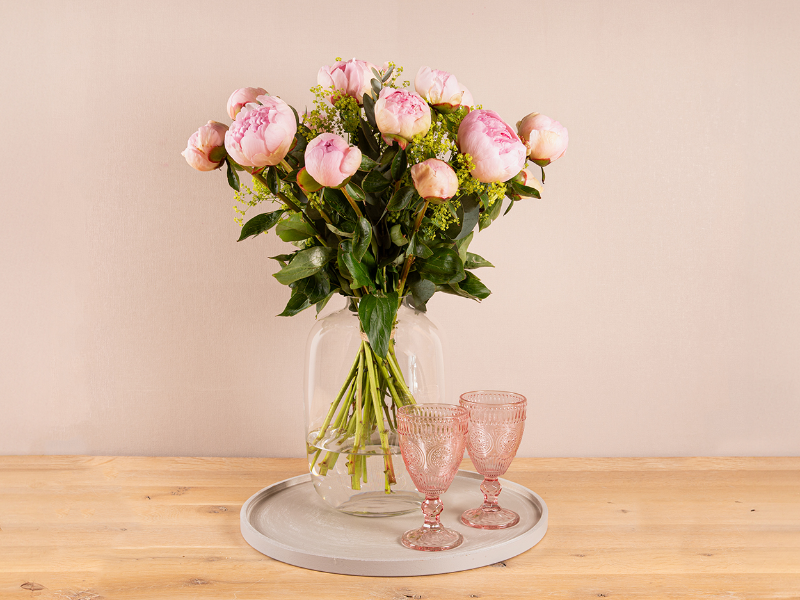 De kleuren van de pioenrozen kunnen afwijken in verband met de beschikbaarheid. Getoonde afbeelding komt overeen met formaat 'Normaal'.